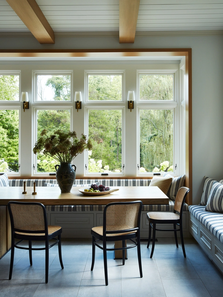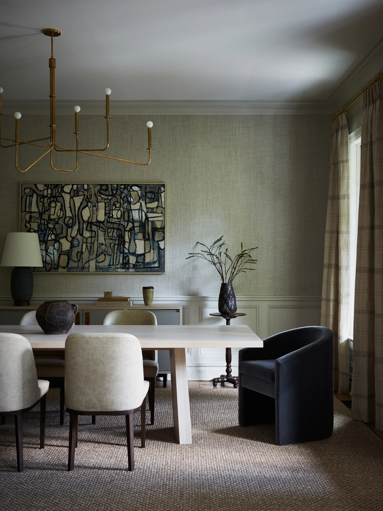 Our clients had excellent taste and were drawn to a classic, warm aesthetic completely in line with ours. We leaned into natural materials, subtle pattern, and warm wood tones to carry the aesthetic vision through. Through an abundant use of custom millwork and furnishings, mixed with unique vintage pieces, we were able to transform and connect the spaces. The exterior is spectacular with flowers and vegetation in bloom throughout the Spring and Summer. The back pergola, outdoor fireplace and pool allow for outdoor entertaining most of the year.