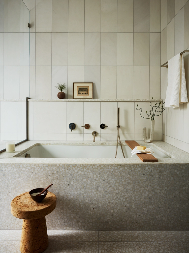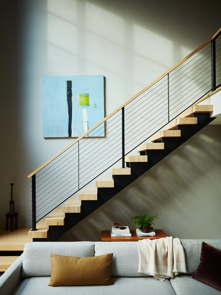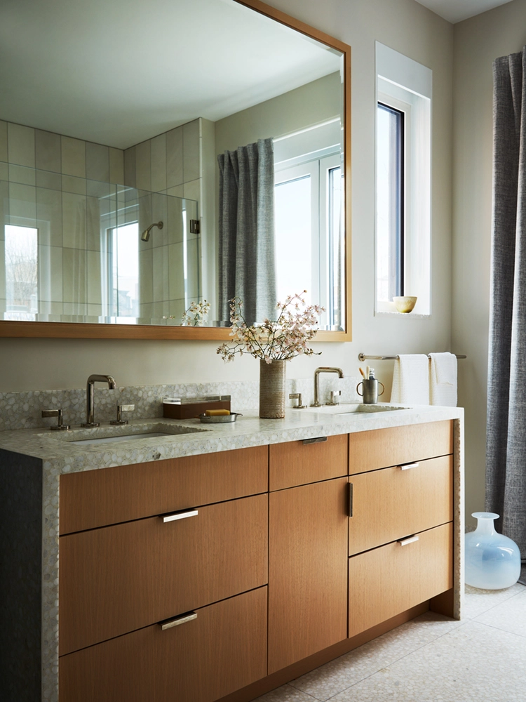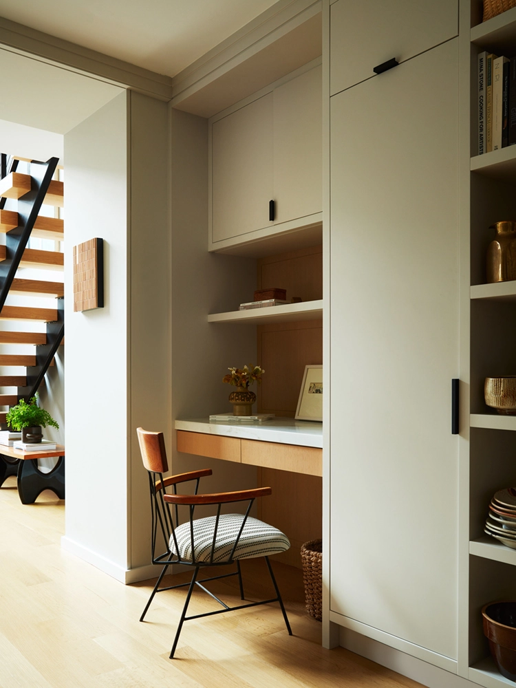 Influenced by the wife’s formative years in Europe, the design reflects a fresh, restrained palette and natural wood finishes. Avid art collectors and world travelers, their curated collection of original art, European artifacts and vintage pottery brings a distinctive personal narrative to the home.