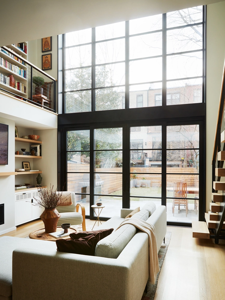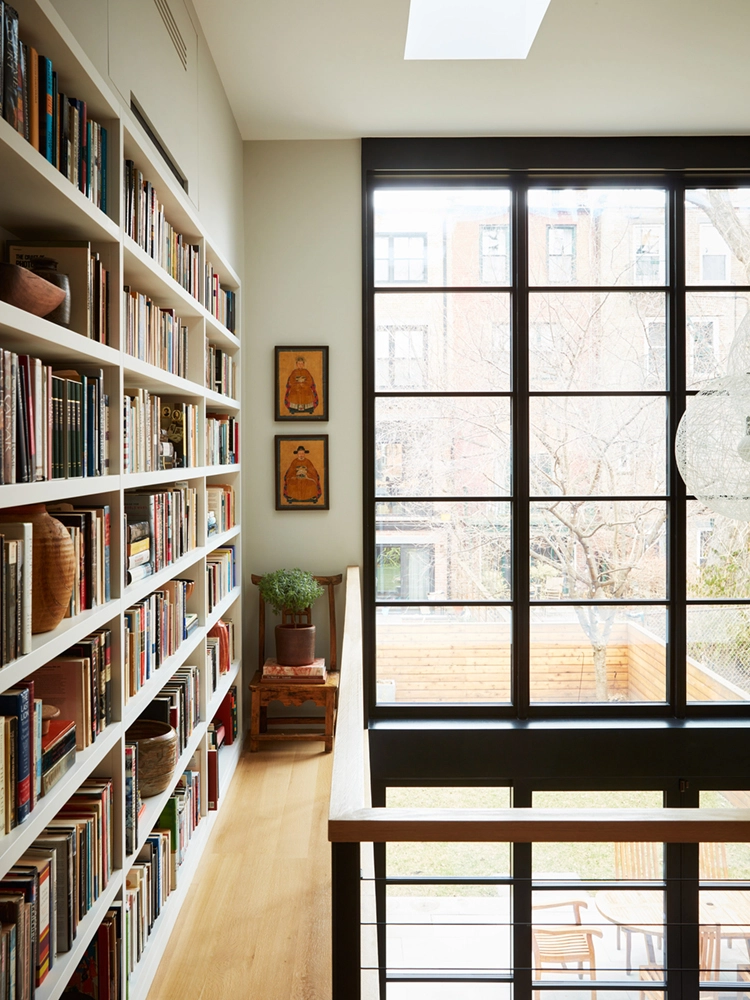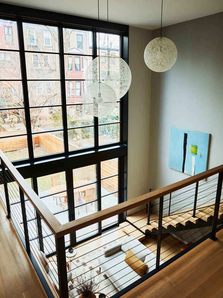 Frequent entertainers, they wanted the main living, dining room and kitchen on the same level with easy access to the garden. To address limited natural light on the garden floor, a double vaulted glass exterior was introduced which provided a striking architectural detail and allowed daylight to flood the spaces. A floating rear staircase connects the extension with the original parlor level.